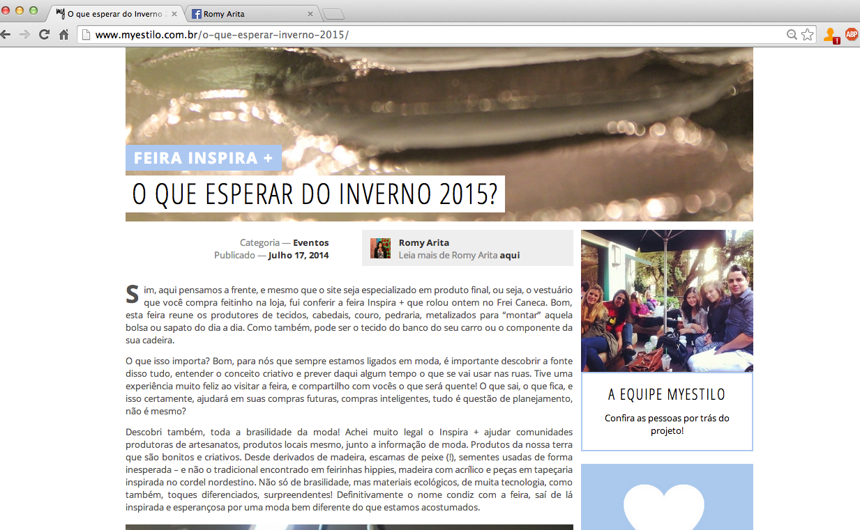 Site de conteúdo de moda acessível brasileira, plataforma alemã. Por algum tempo, o site estava ainda em preparo, sendo assim, para já termos contato na época com o público em mostrar o que se tratava o portal de moda, utilizamos do Facebook para contar as últimas notícias de moda. Especialmente, na cobertura de eventos. Aqui estão as fotos nos dias que pude acompanhar alguns dos desfiles, feiras e bazares. São Paulo tem uma agenda bem agitada no quesito moda, e fico feliz de ter entrado em contato com diferentes marcas, eventos, culturas.
